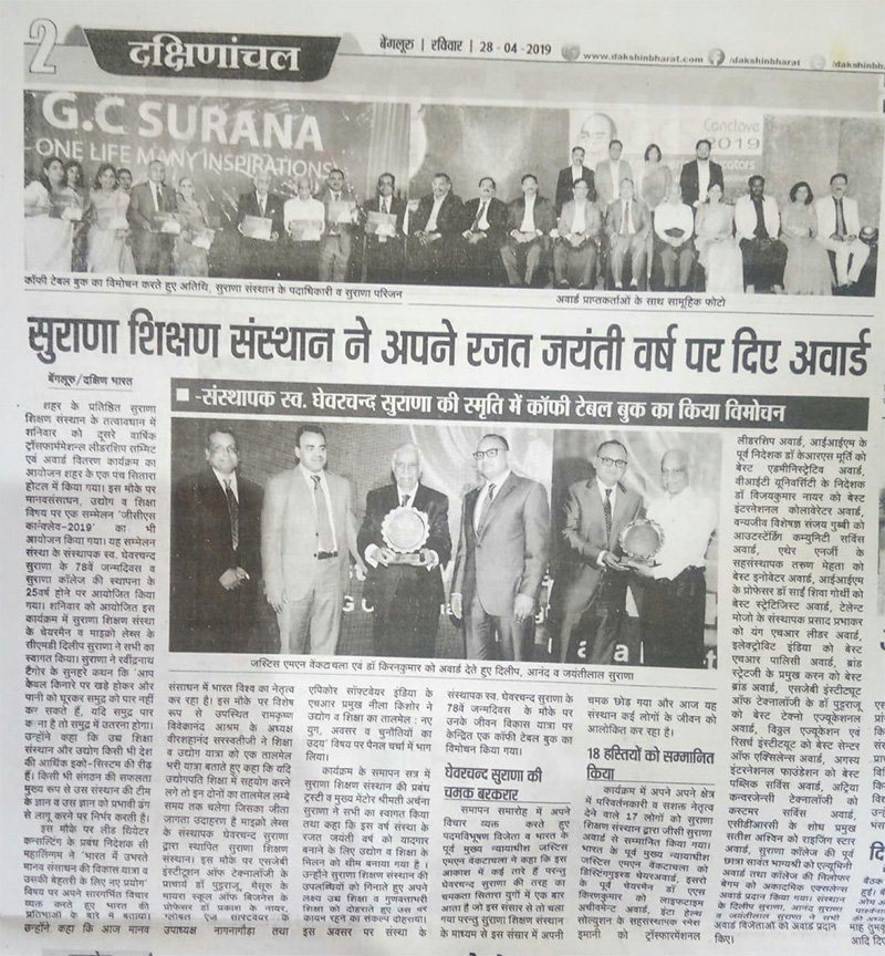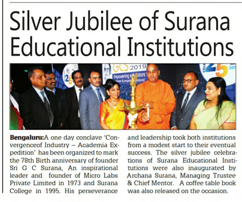 2nd Annual GCS Conclave 2019 Of Surana Educational Institutions To Recognize Shining Stars Of Indian Education Sector, To Debate "Convergence of Industry - Academia Expedition" In Bengaluru On 27th April 2019