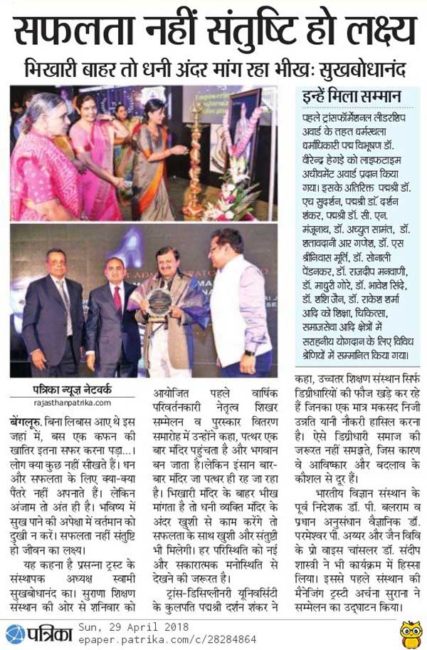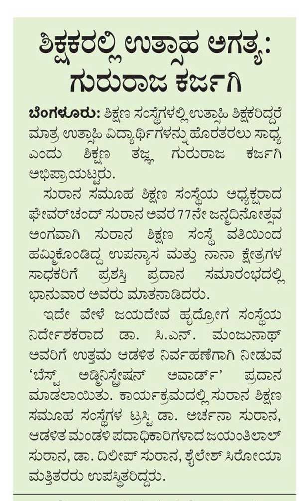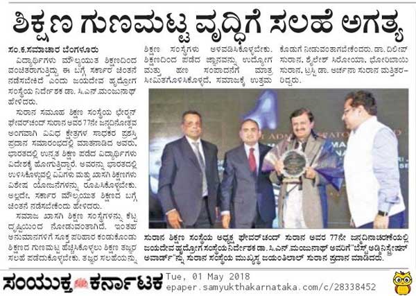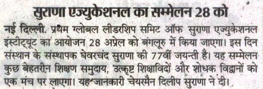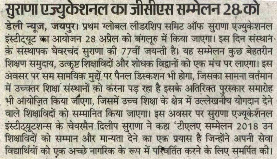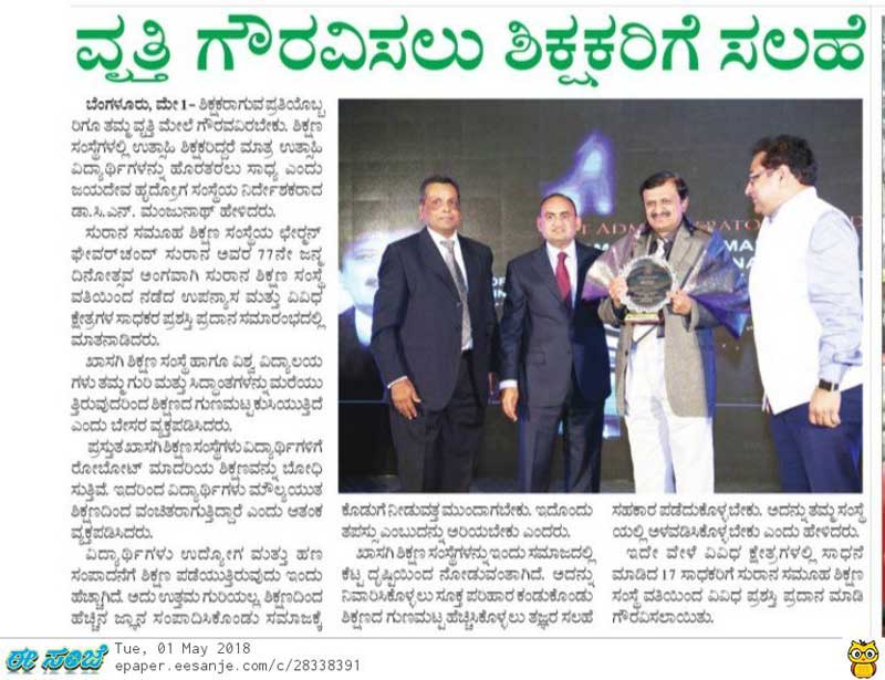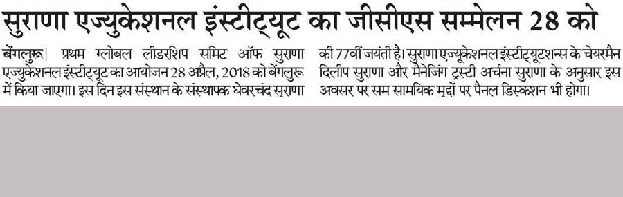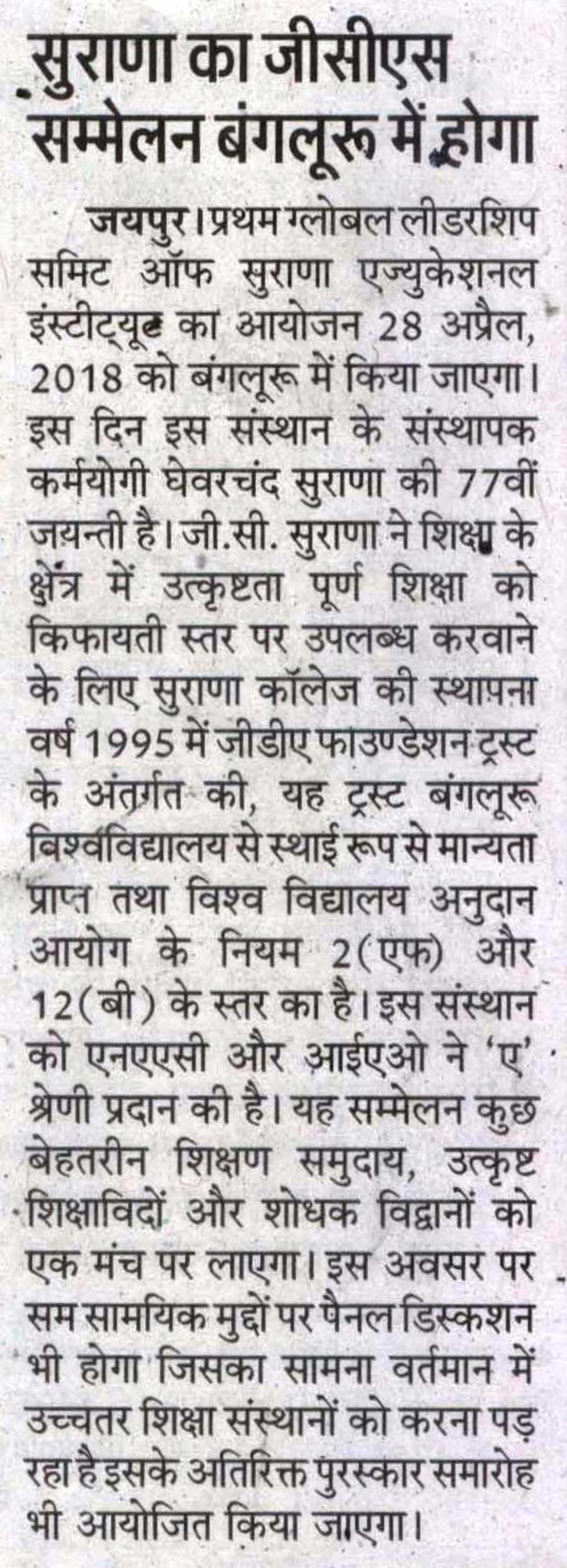 1st Annual GCS Conclave 2018 Of Surana Educational Institutions To Recognize Shining Stars Of Indian Education Sector, To Debate "Empowering Innovations In Transformational Leadership" – EDUCATORS FOR EDUCATION" In Bengaluru On 28th April 2018